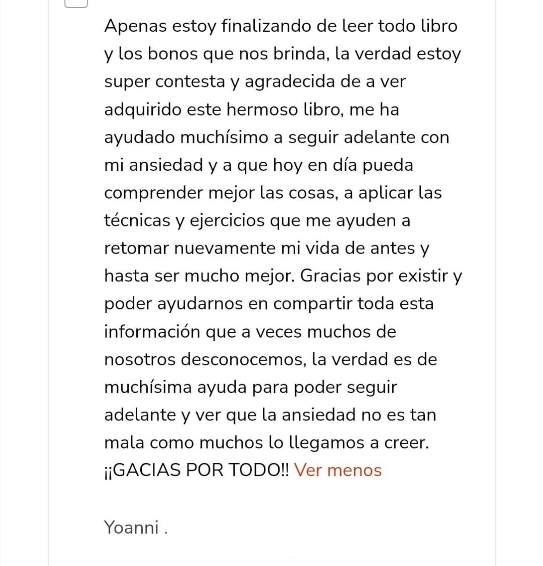 🎁 Bono 1: Cinco pasos para vivir sin ansiedad (Valorado en 45 USD)