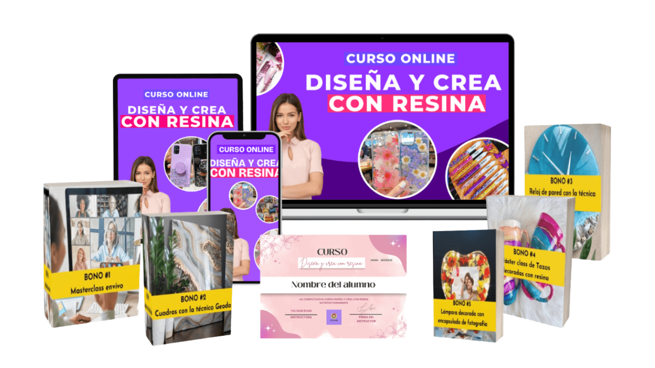 El curso online paso a paso donde aprenderás desde cero a transformar la resina en piezas únicas, brillantes y de alta calidad.  Está diseñado para que logres resultados profesionales incluso si nunca antes has trabajado con este material.